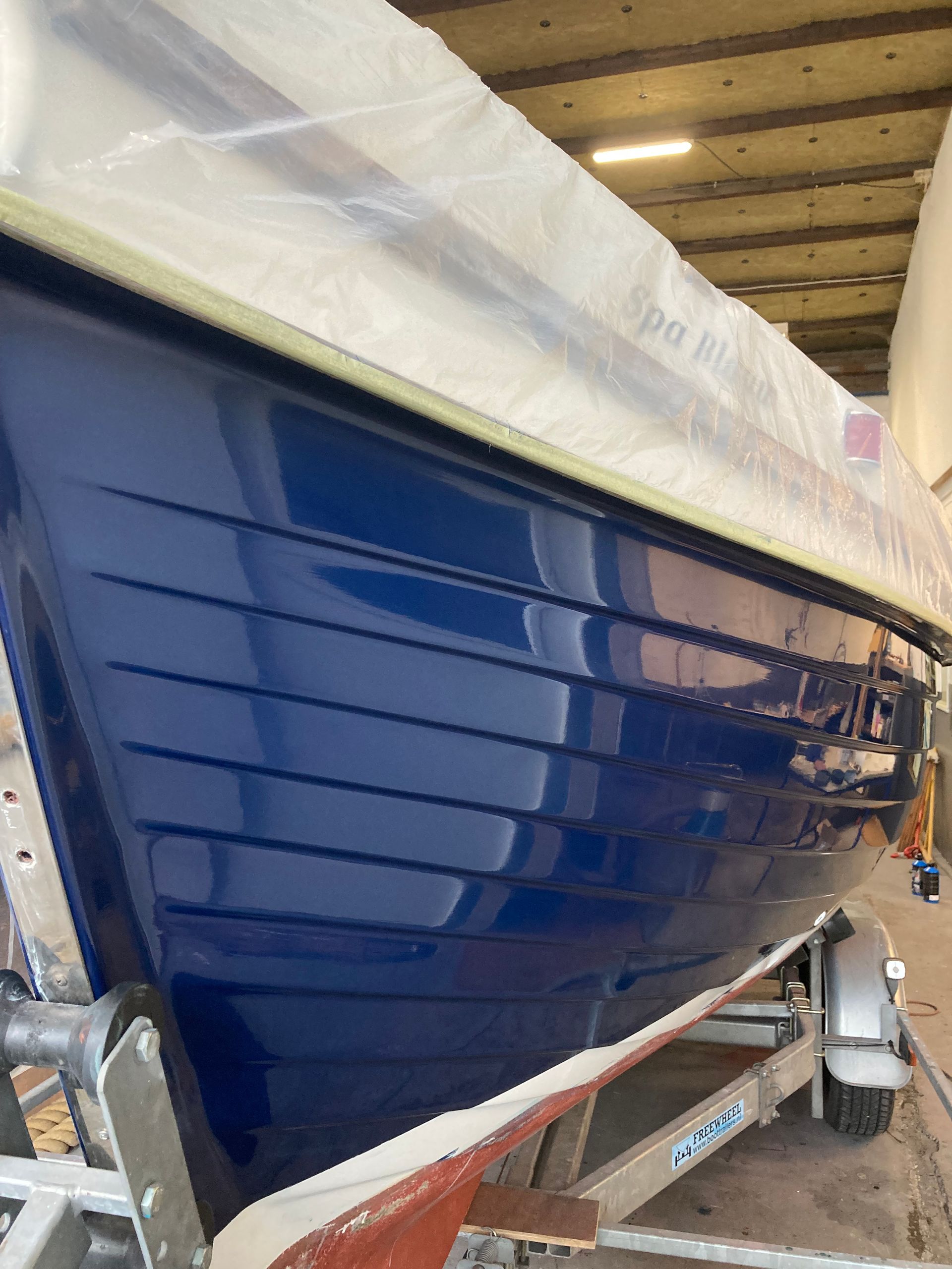 - De romp is volledig afgelakt met 2 componenten lak, marine blauw.