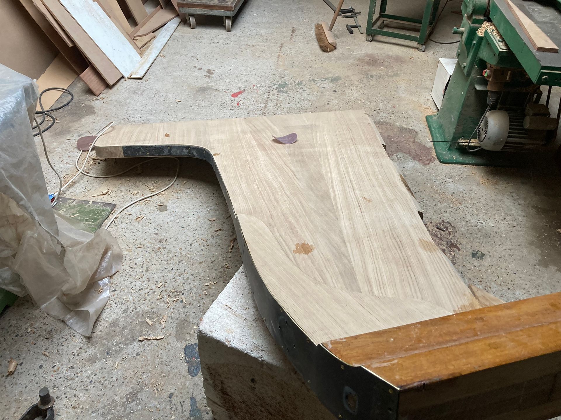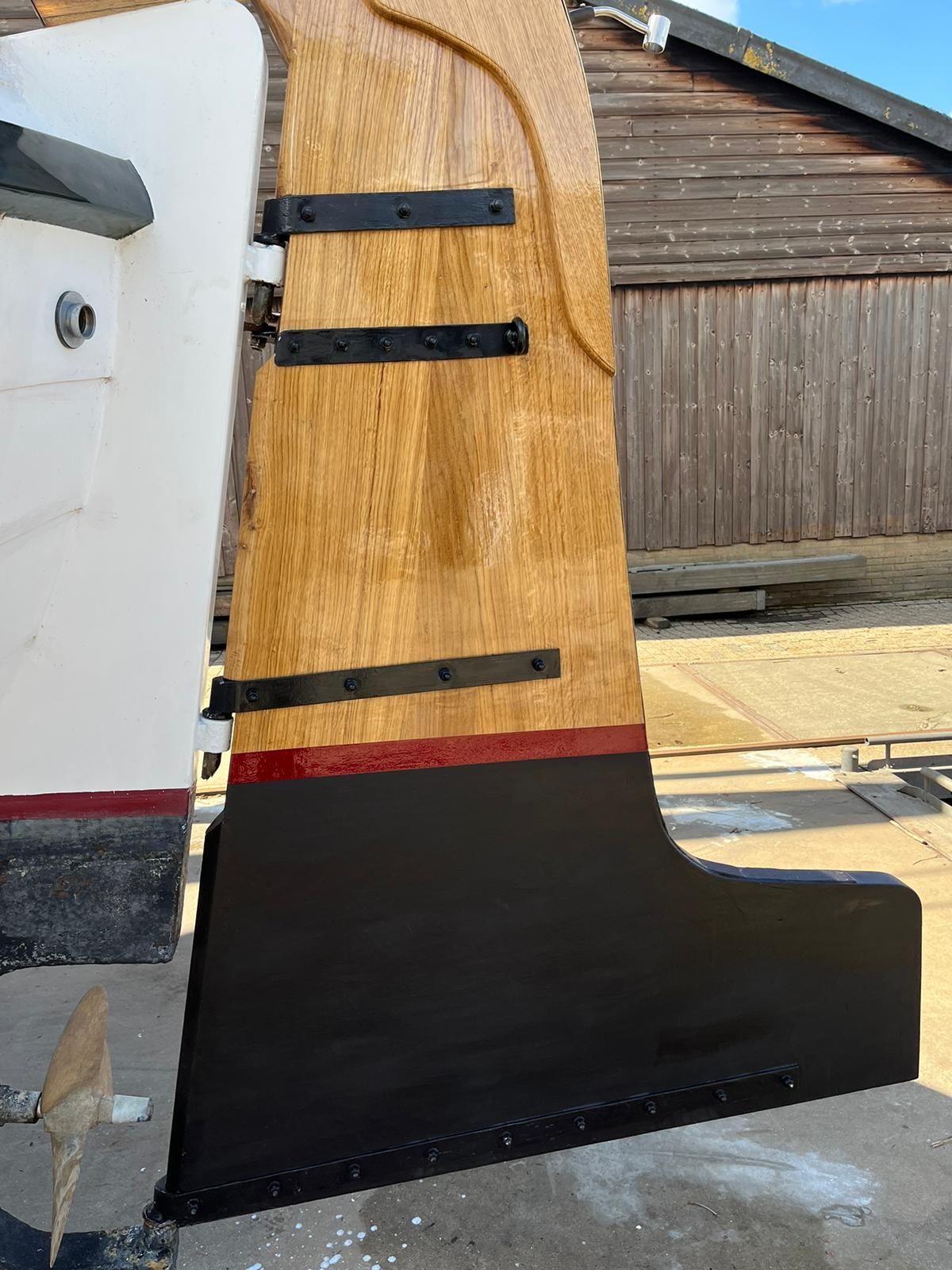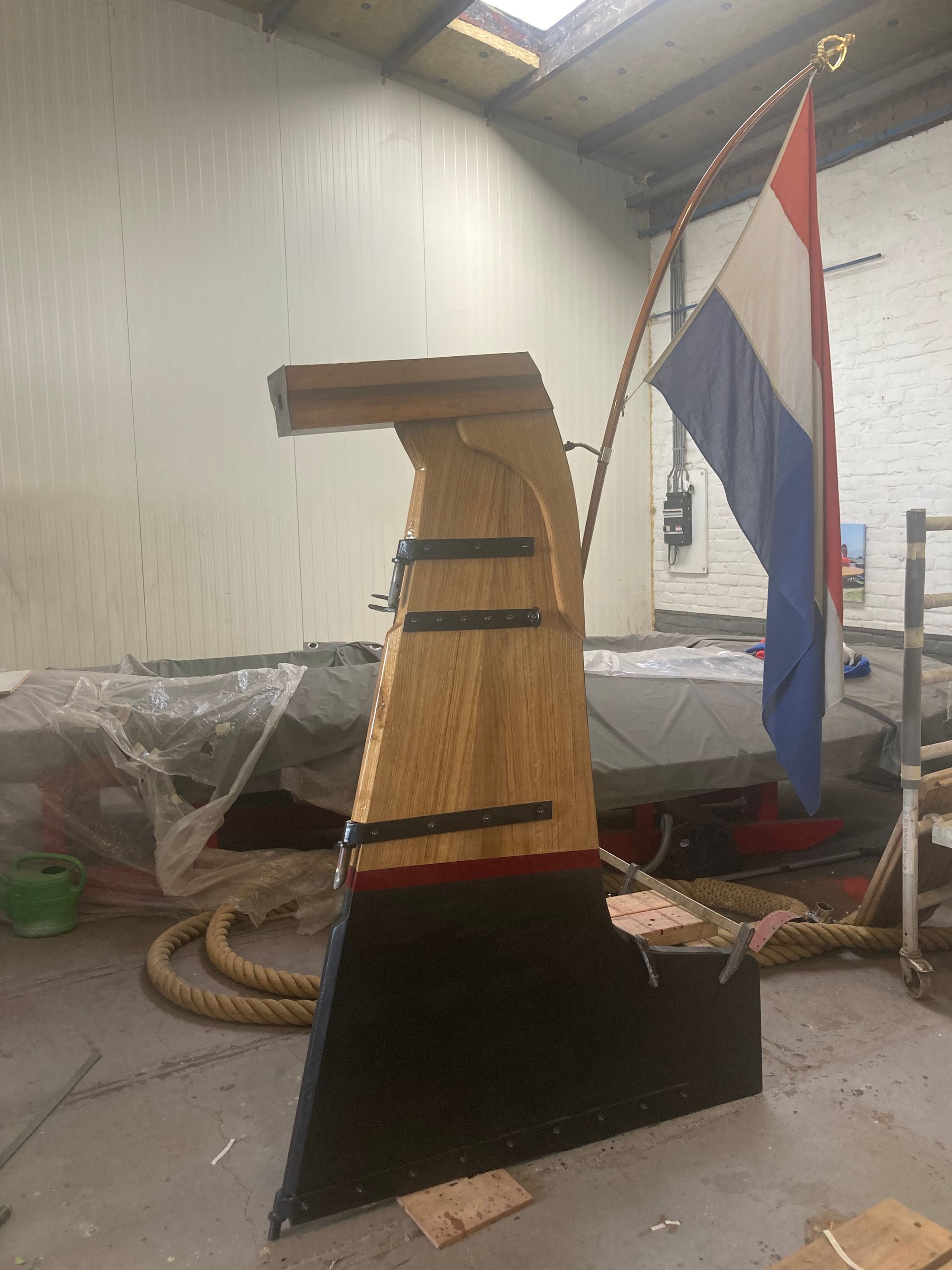 Weer eens wat anders. Een roer voor een Lemsteraak!Dit roer is gemaakt van 60 mm dik eiken. Door een sterke groef, tong verbinding te gebruiken maakt dit het roer onwijs sterk.De klant heeft het roer zelf netjes afgelakt met 9 lagen lak.