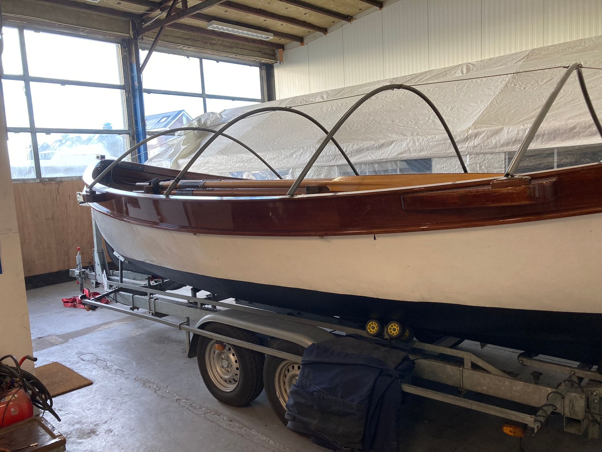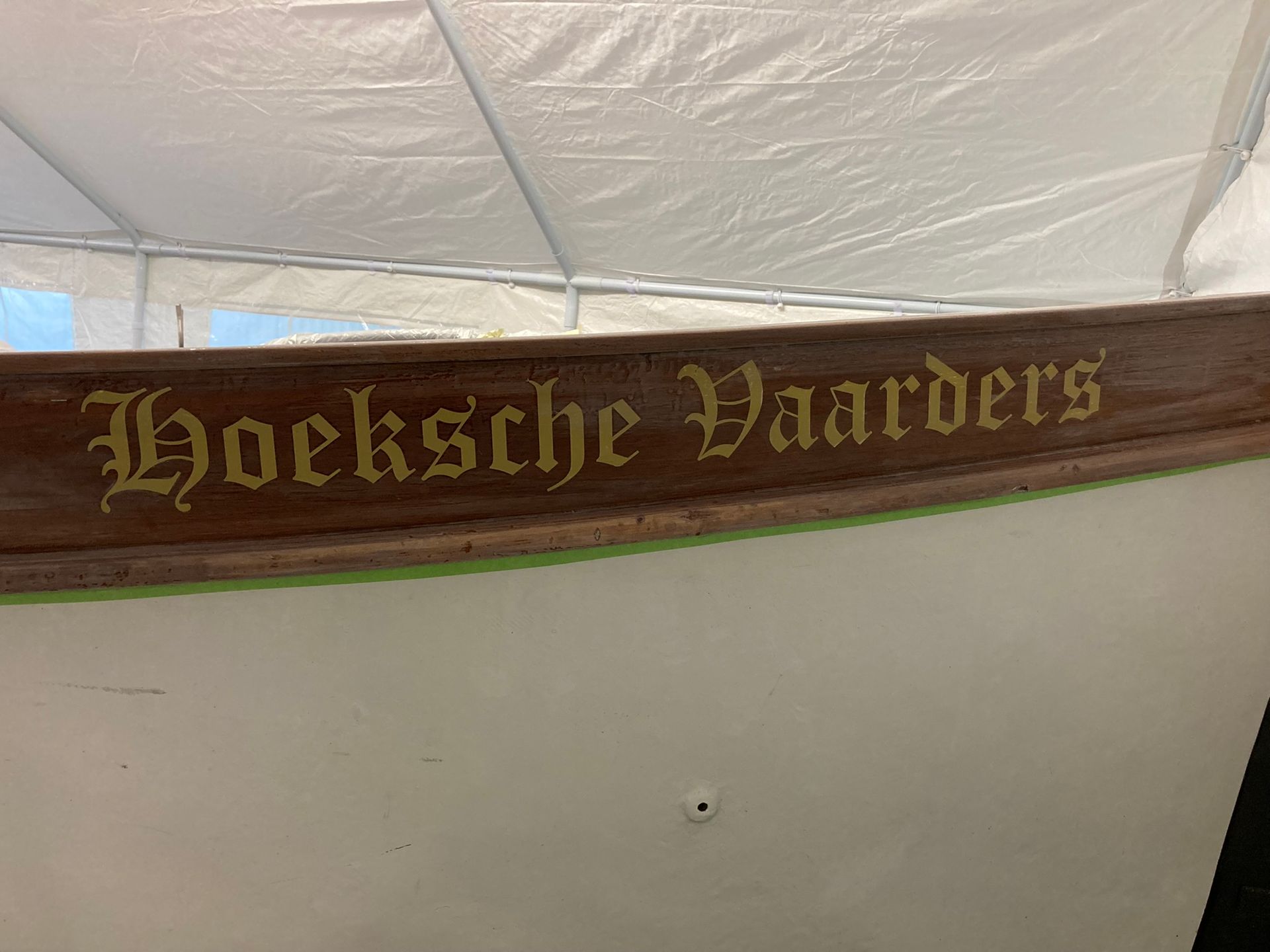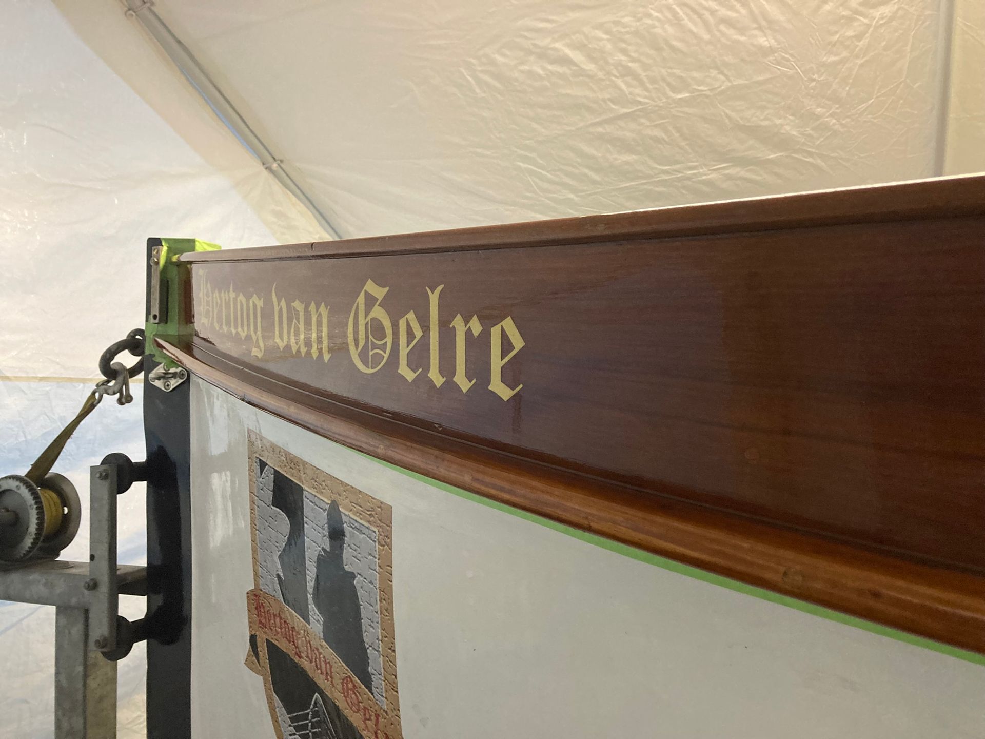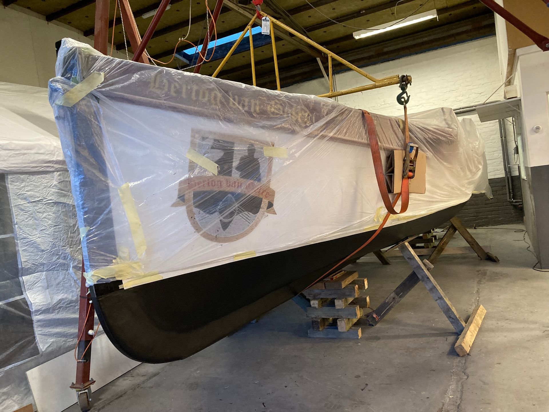 Onze 100+ jaar oude roeisloep heeft weer een gezond en strak onderwaterschip en prachtig verniswerk.