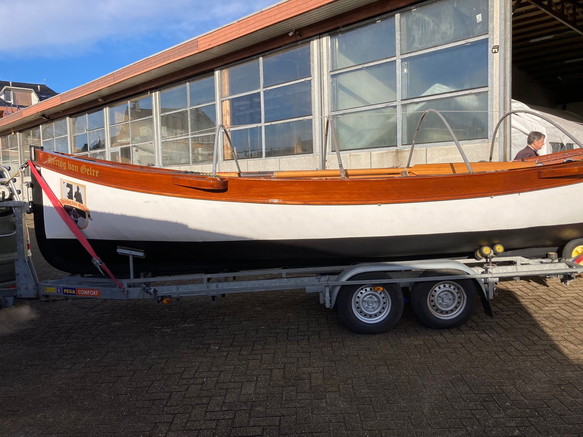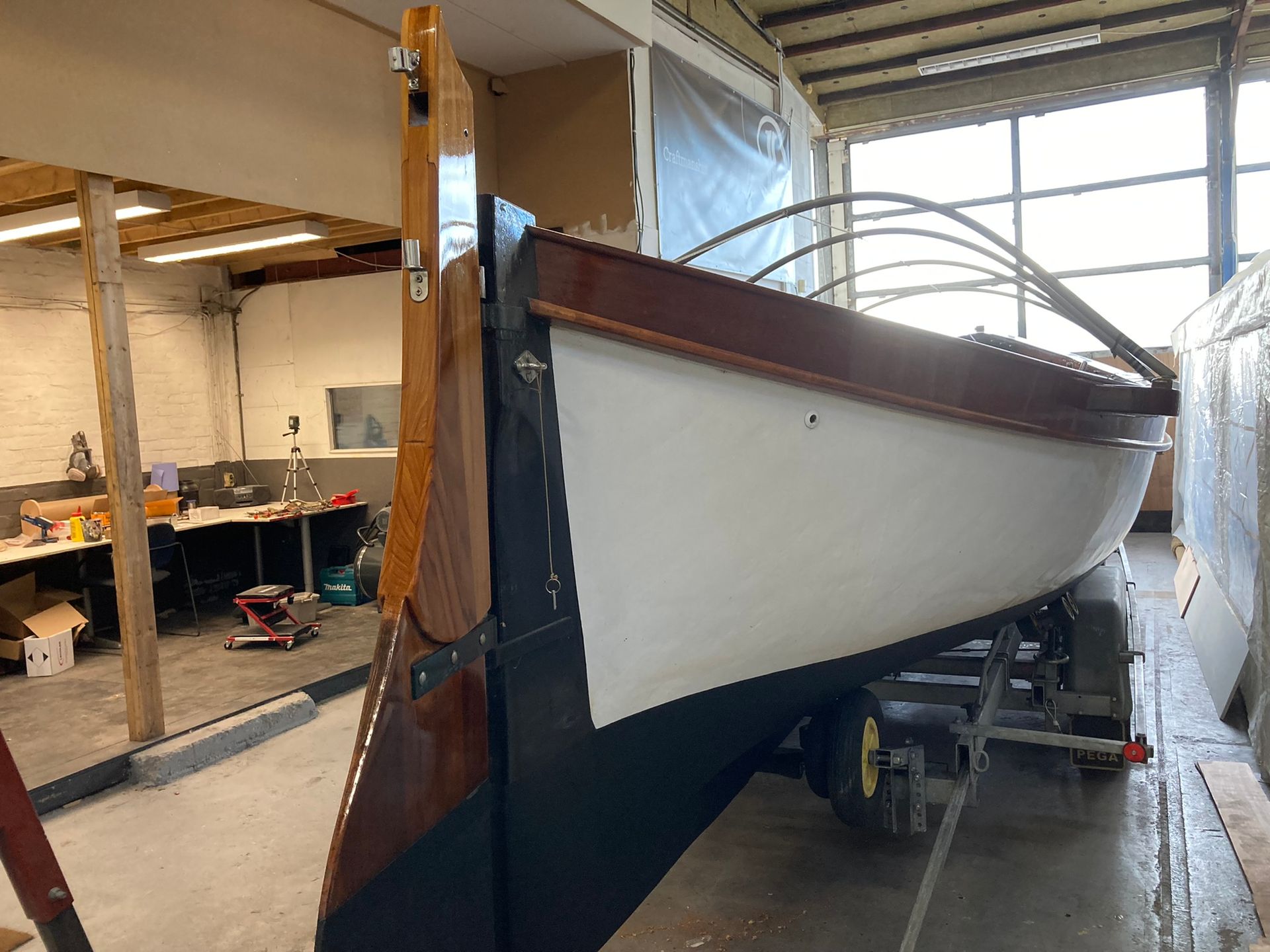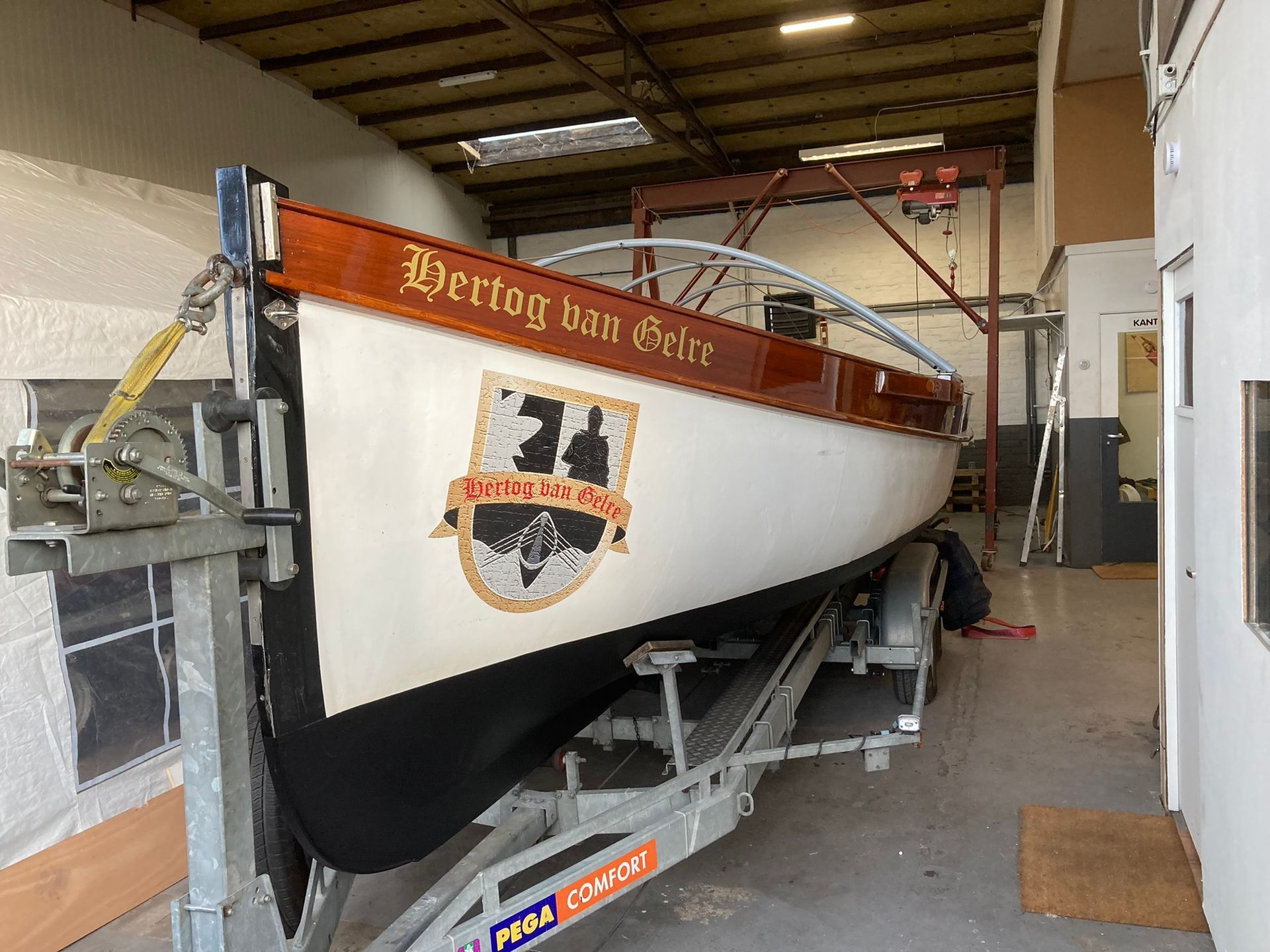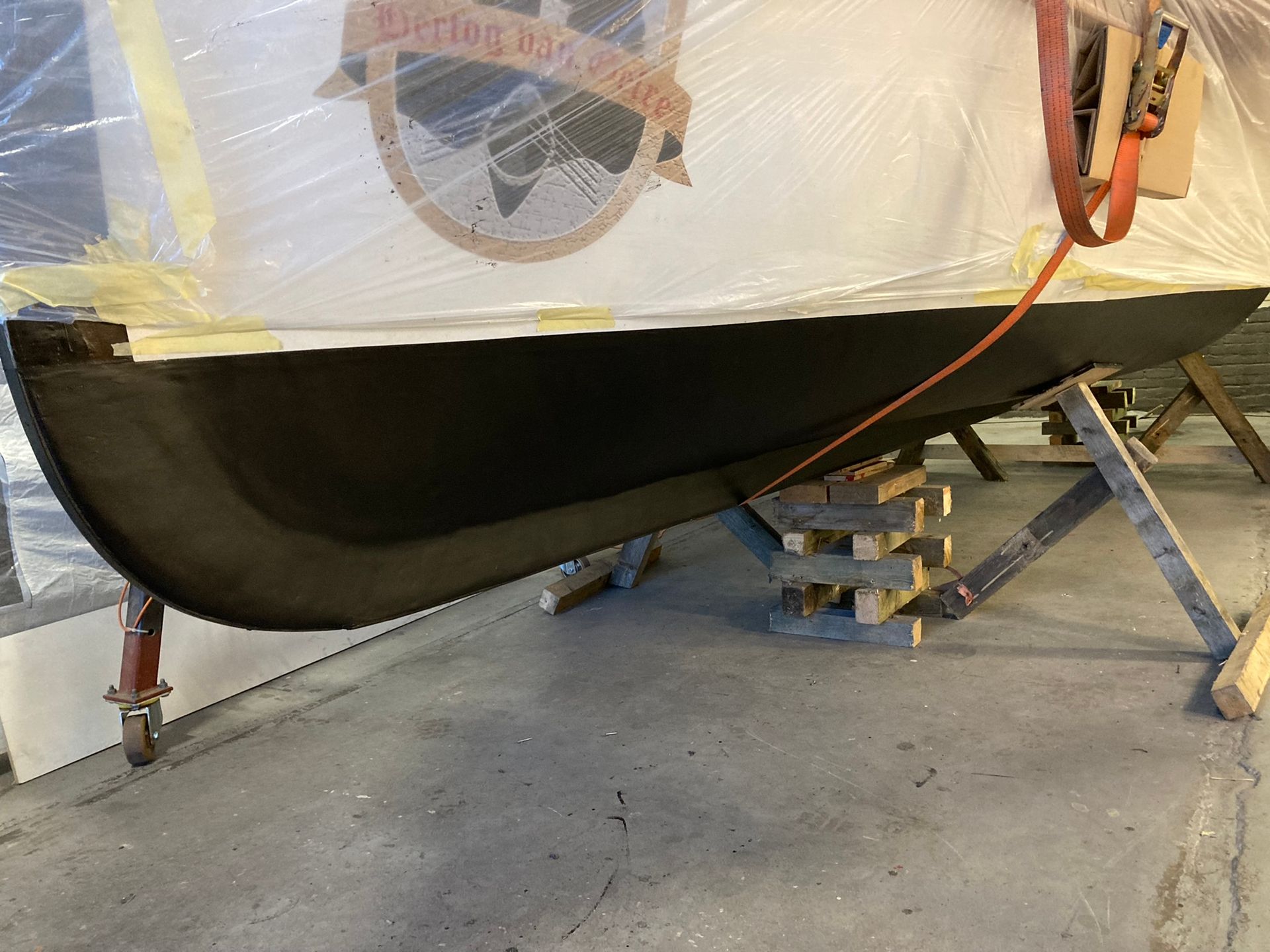 Onze 100+ jaar oude roeisloep heeft weer een gezond en strak onderwaterschip en prachtig verniswerk.