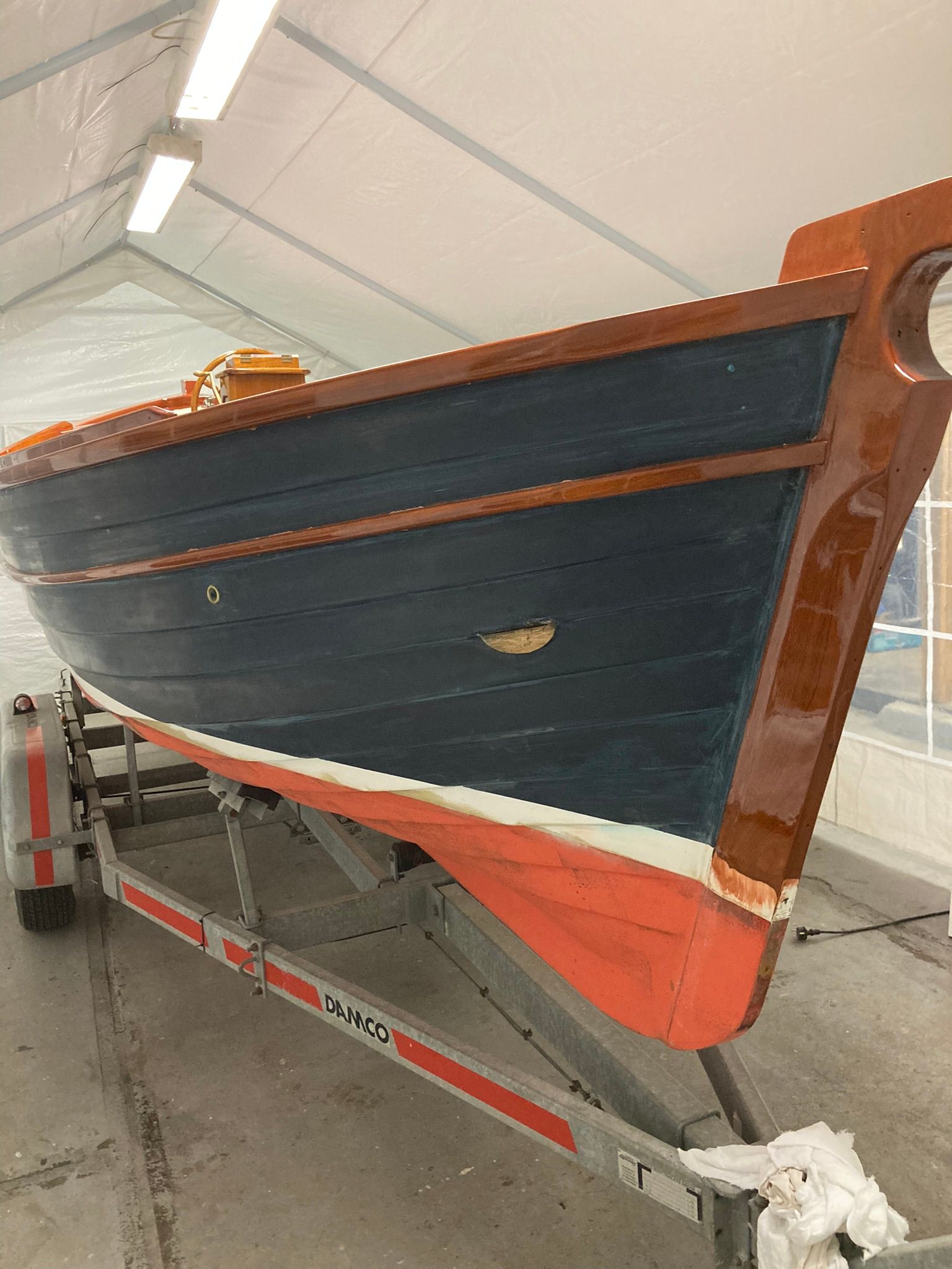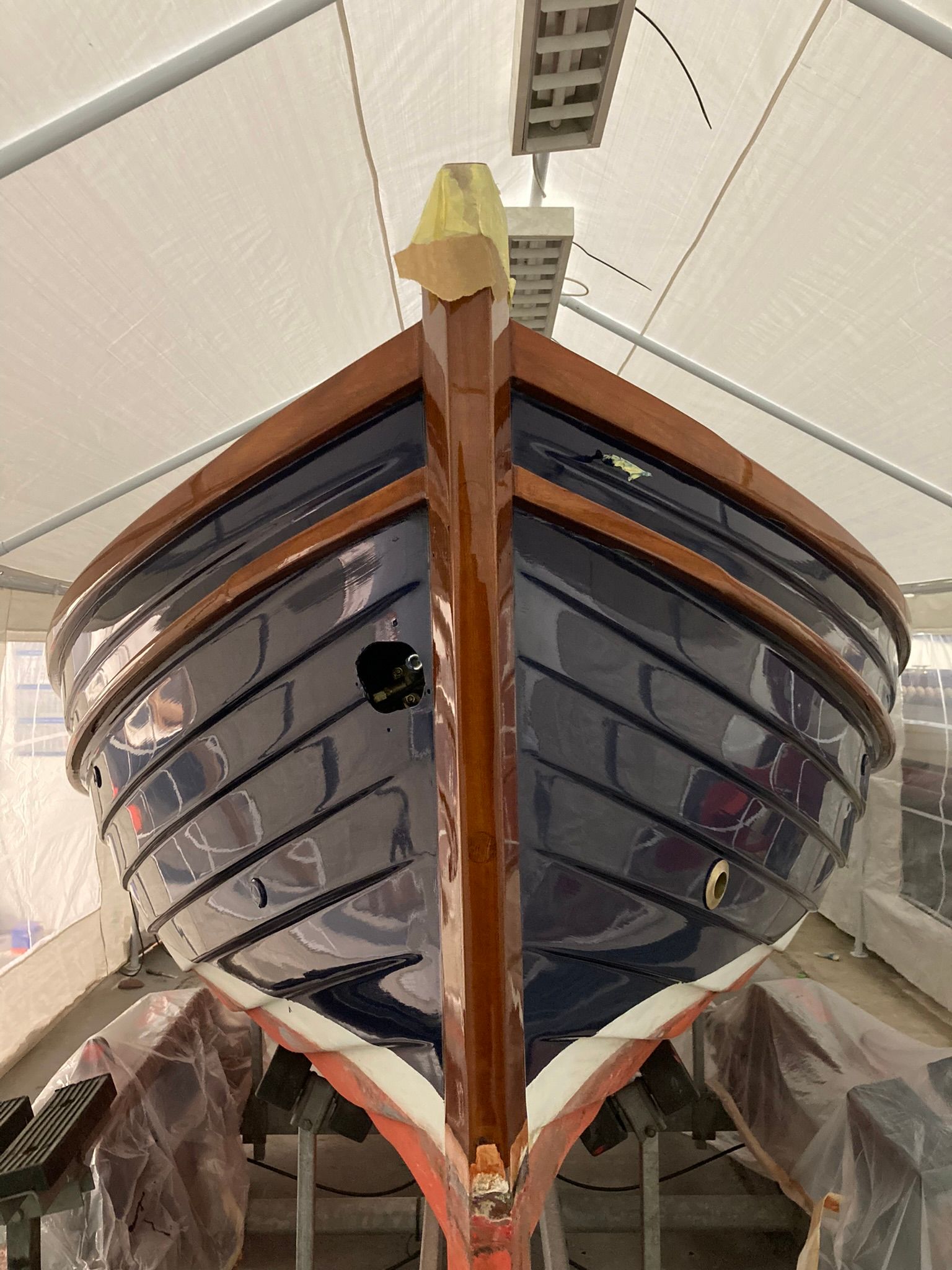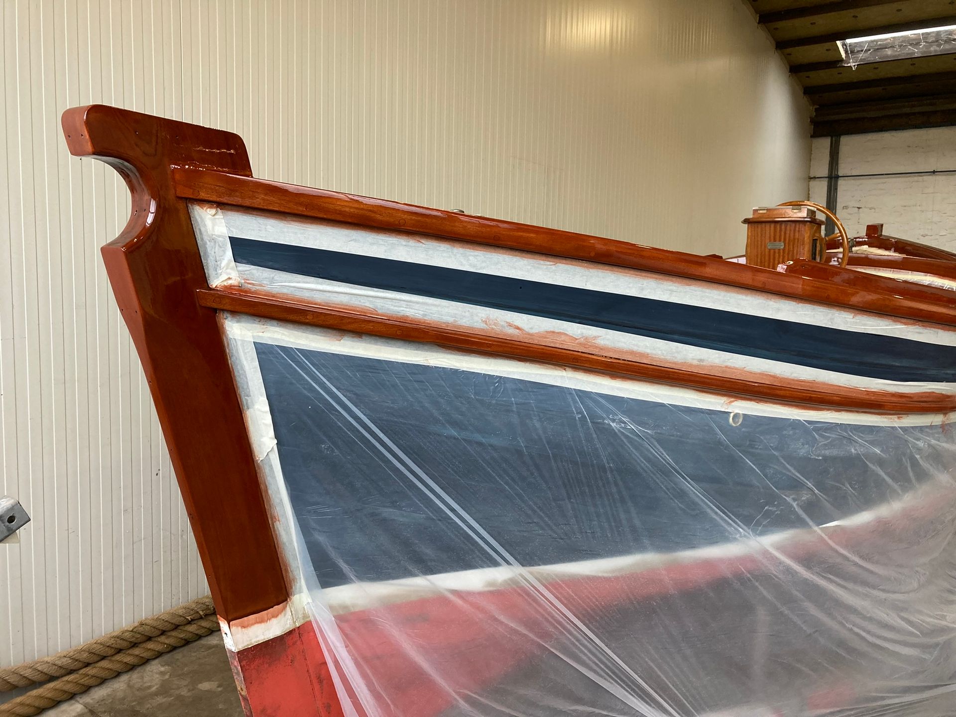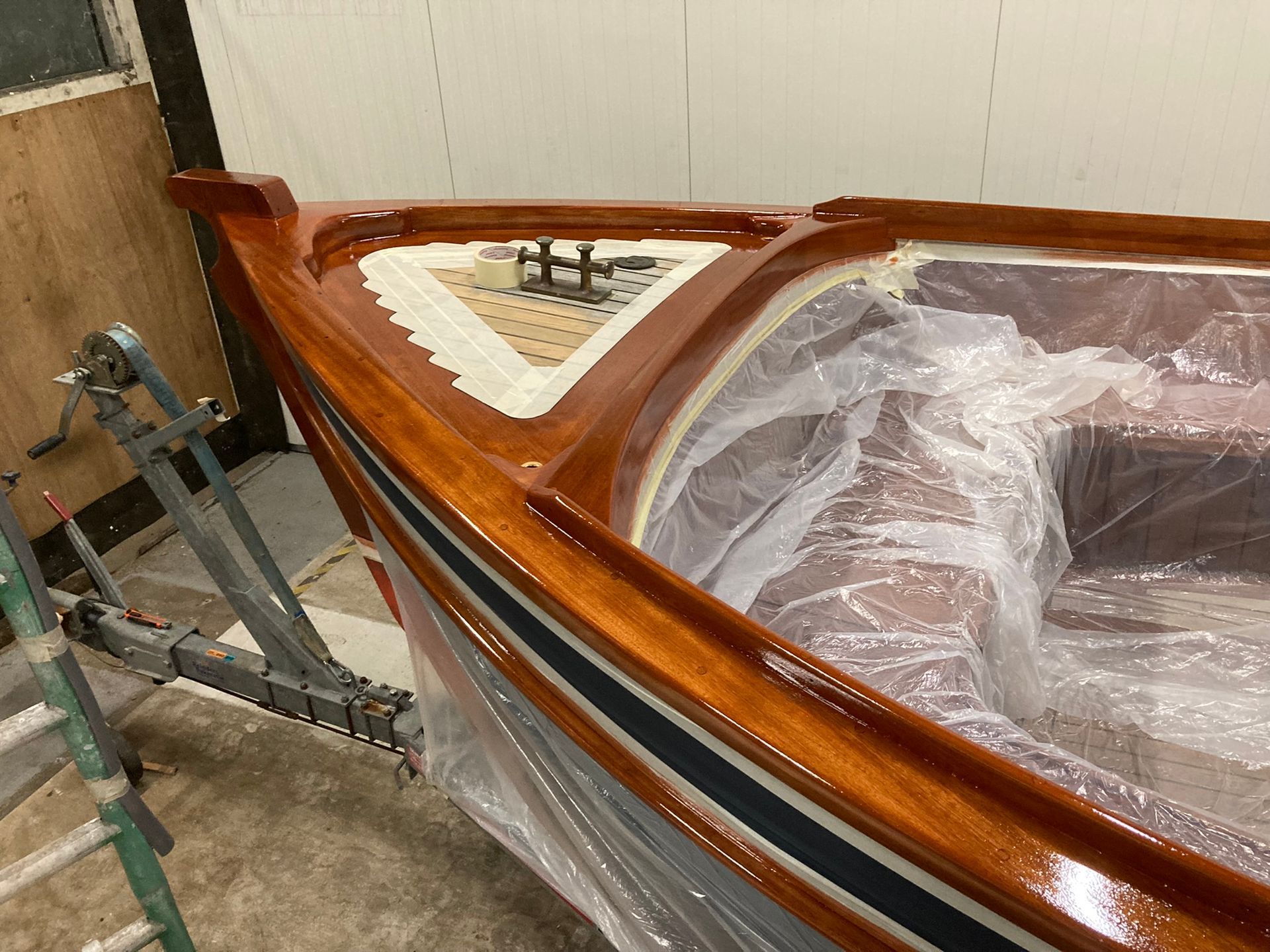 De romp is volledig afgelakt met 2 componenten lak, marine blauw.
