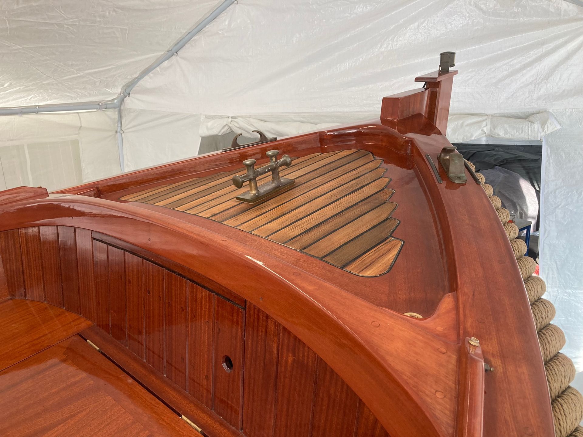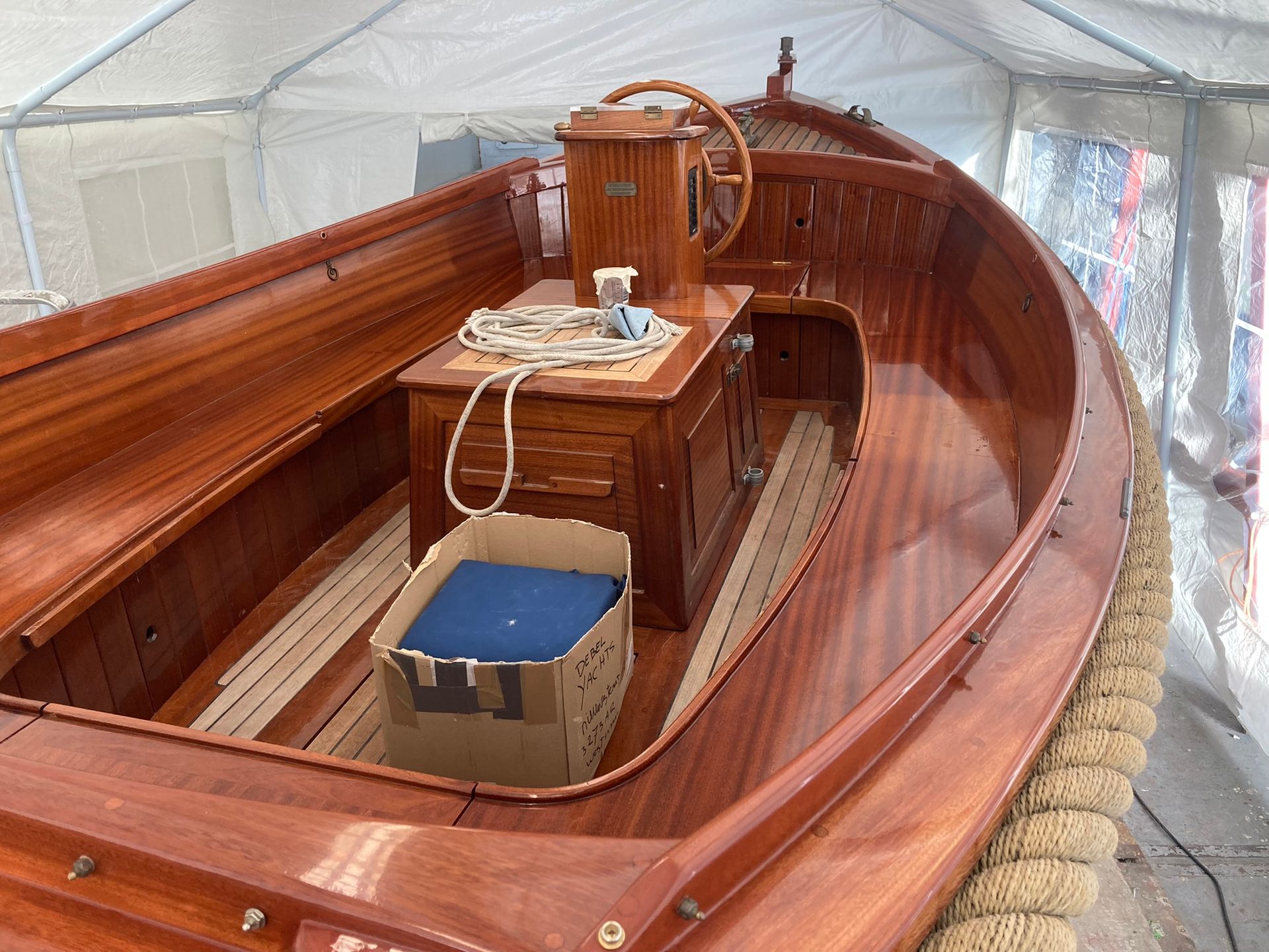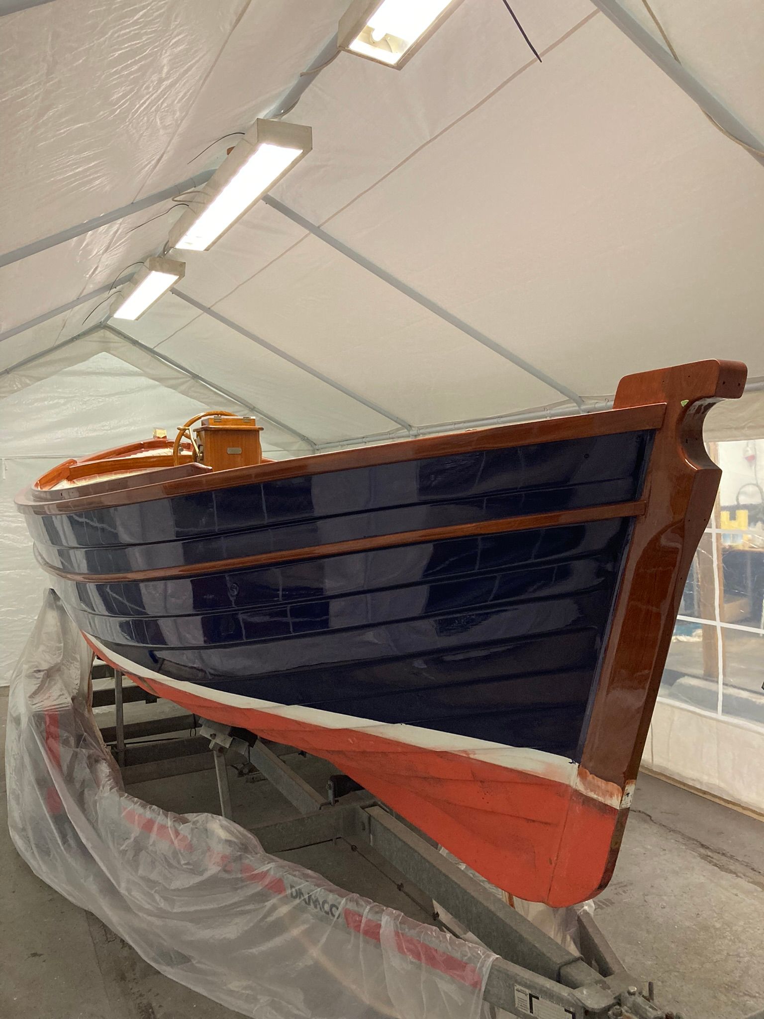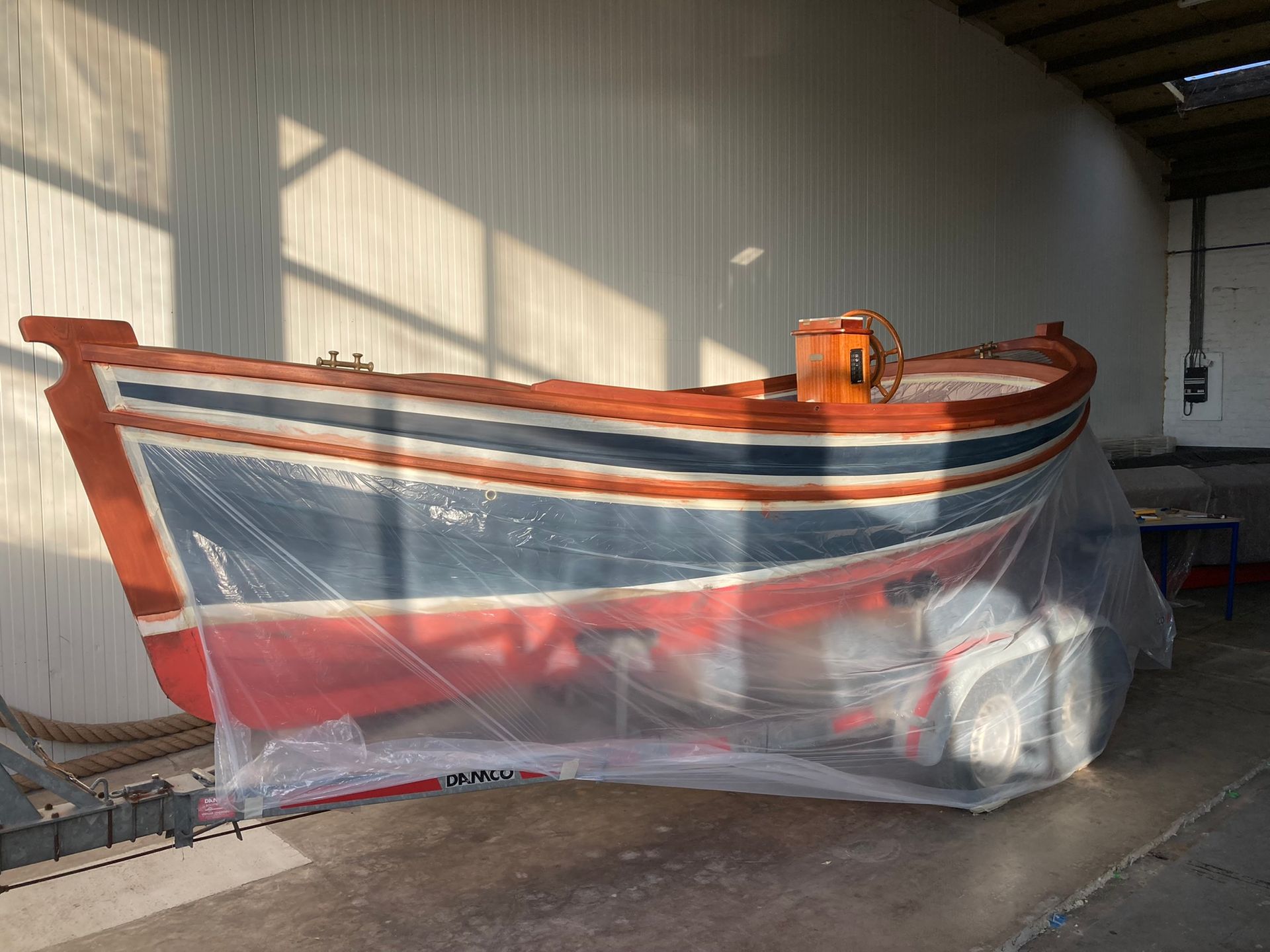 De romp is volledig afgelakt met 2 componenten lak, marine blauw.