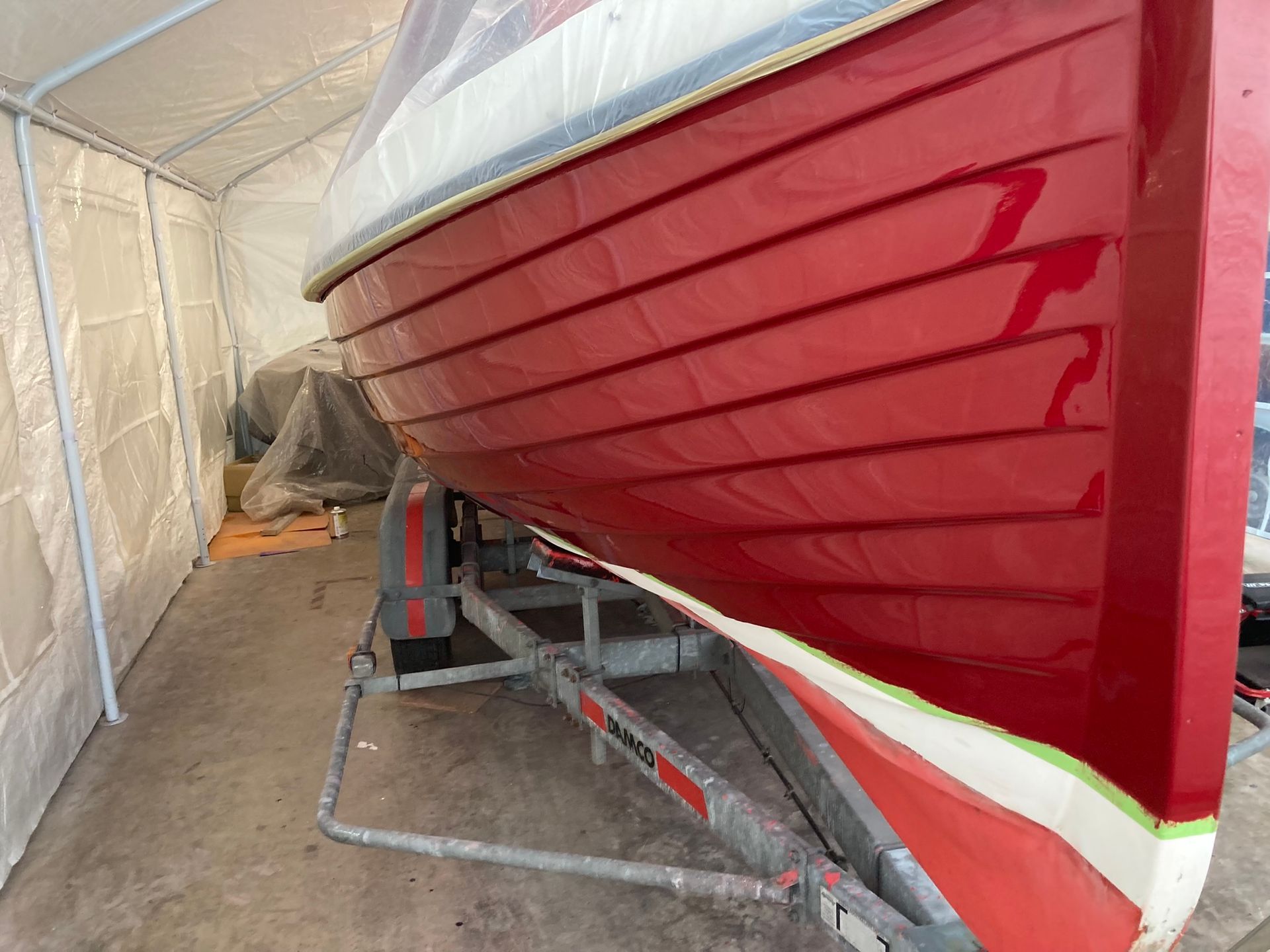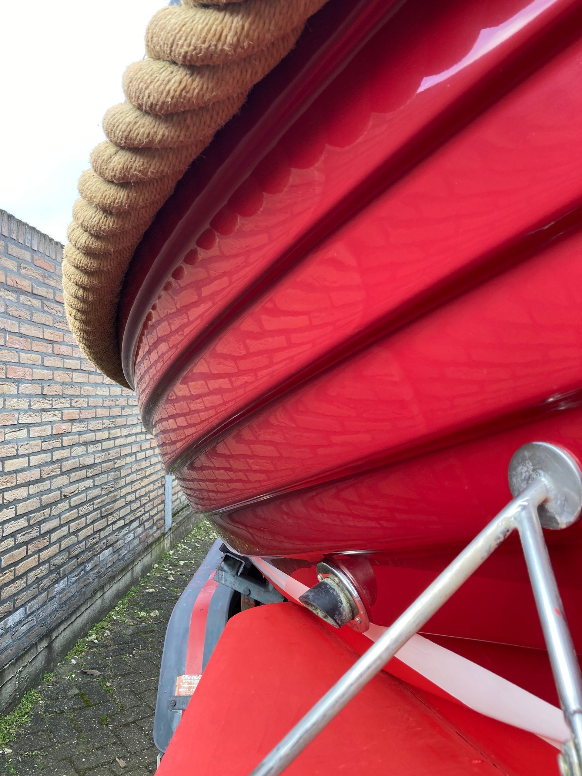 - De romp is volledig afgelakt met 2 componenten lak, 'Red wine'.